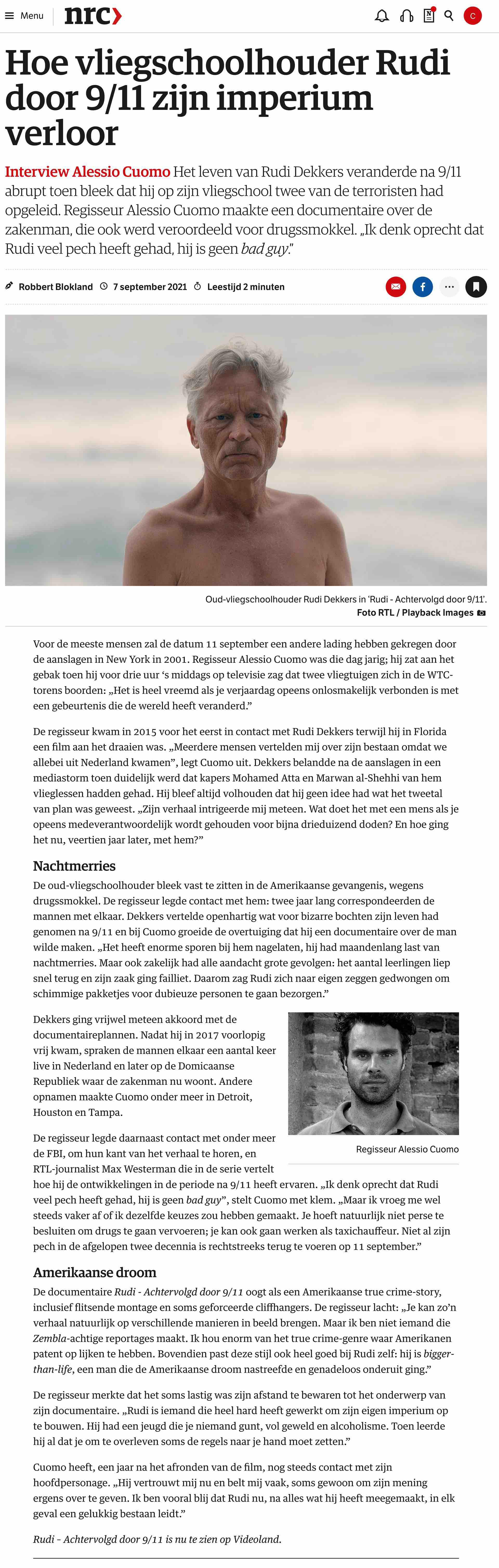 Rudi - Achtervolgd door 9/11 is een driedelige documentaireserie over het onwaarschijnlijke en kleurrijke leven van Rudi Dekkers: een Amsterdammer die in 2001 het wereldnieuws haalde nadat bekend was geworden dat hij de 9/11-kapers Mohamed Atta en Marwan al-Shehhi had opgeleid op zijn vliegschool in Venice, Florida.
