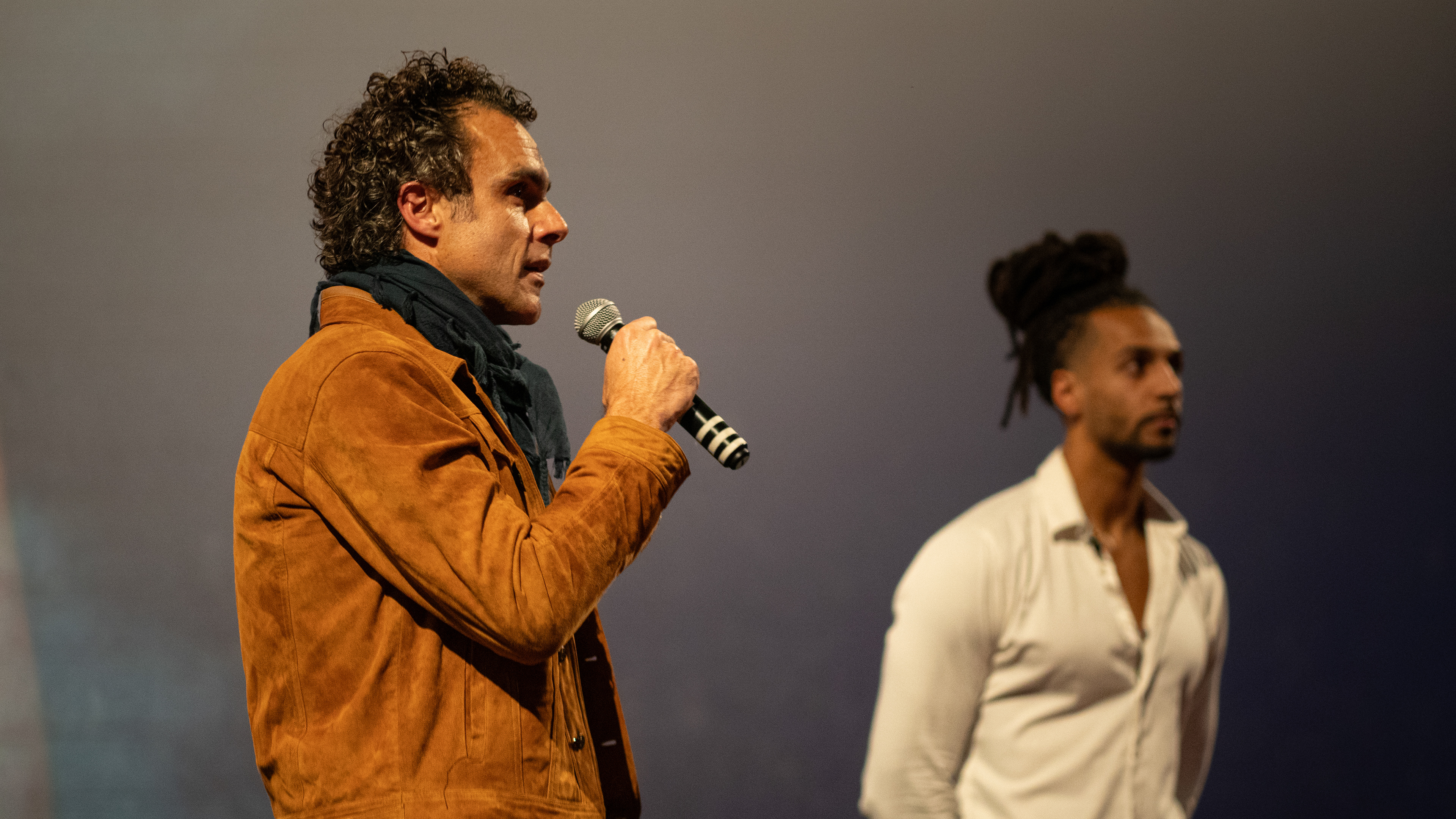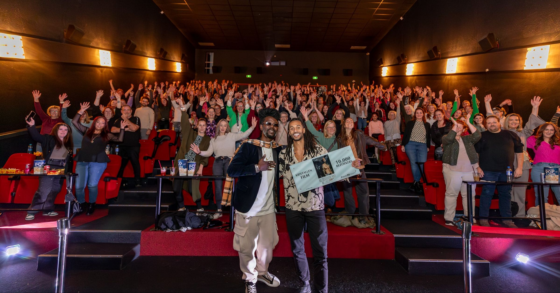 Regisseur Alessio Cuomo en comedien Jay Francis tijdens een uitverkochte première in Pathé Rotterdam.